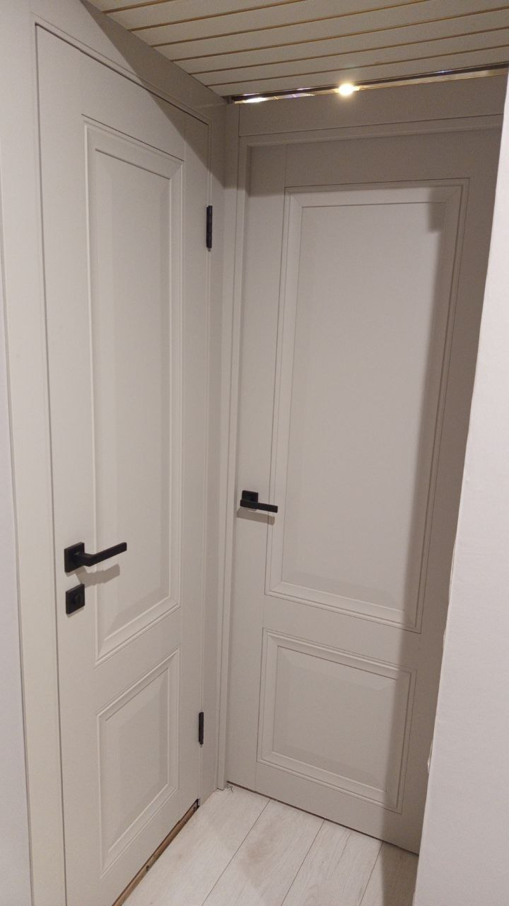 - Комплектующие Телескопический компланарный погонаж* . Дверная коробка с уплотнителем для мягкого закрывания. Широкий наличник - 80 мм.